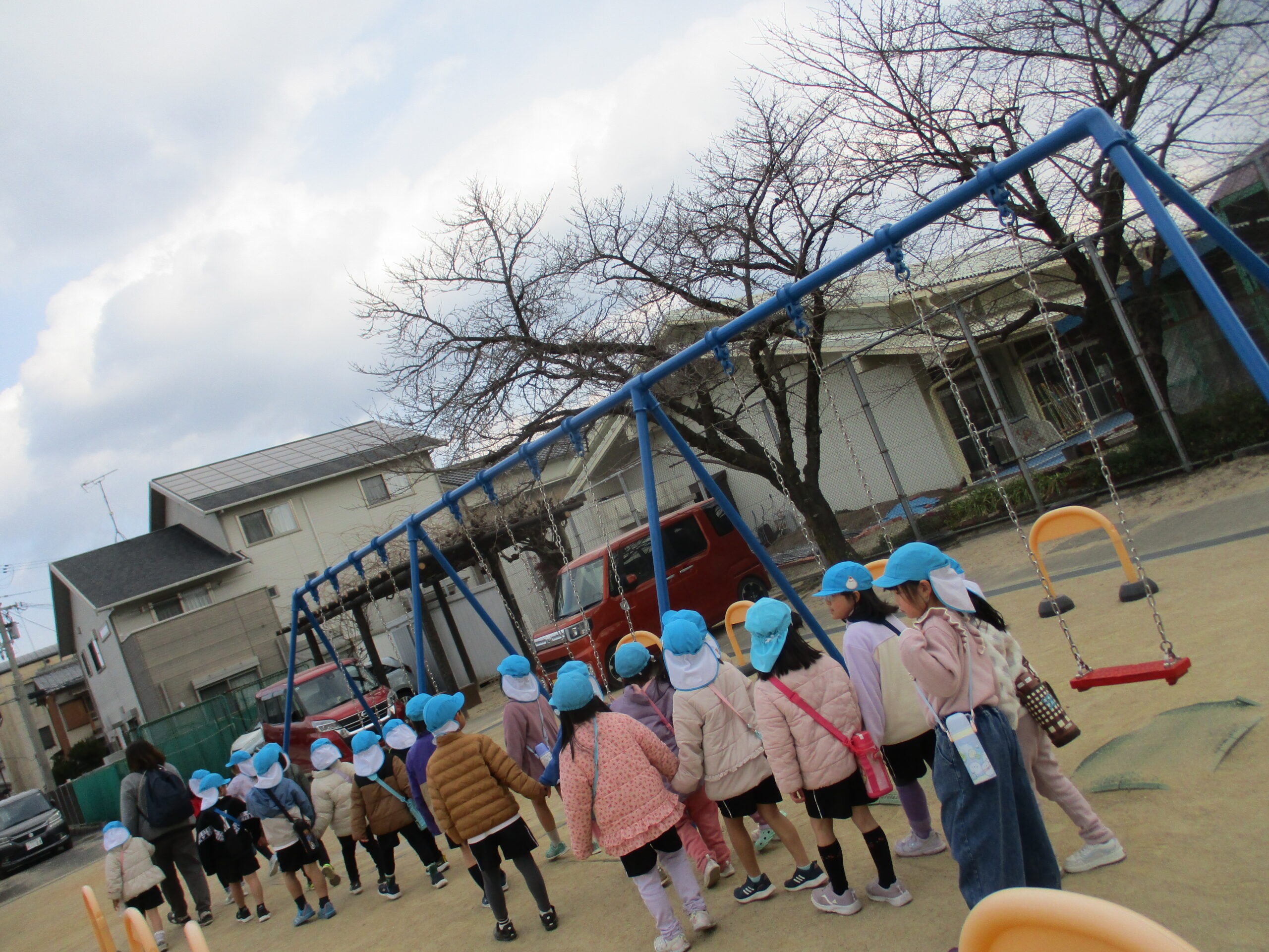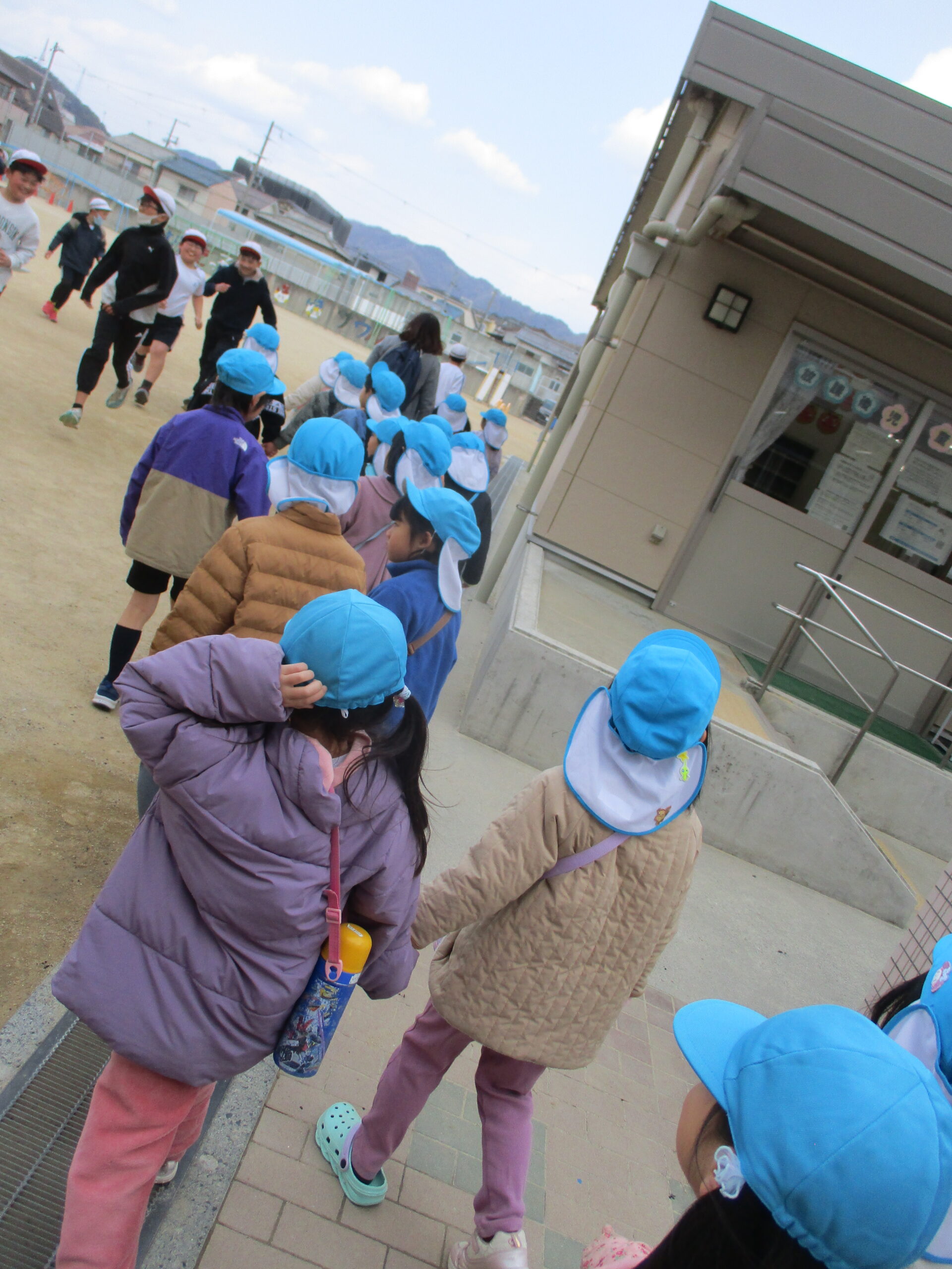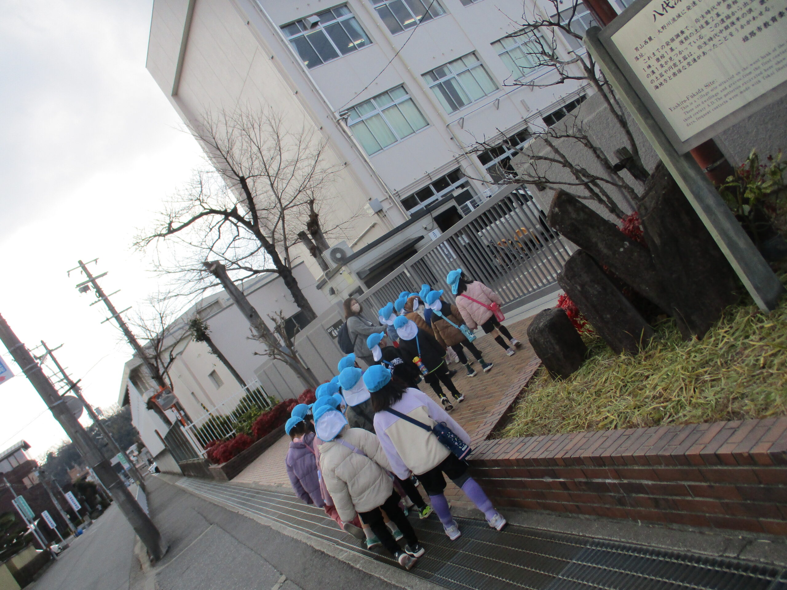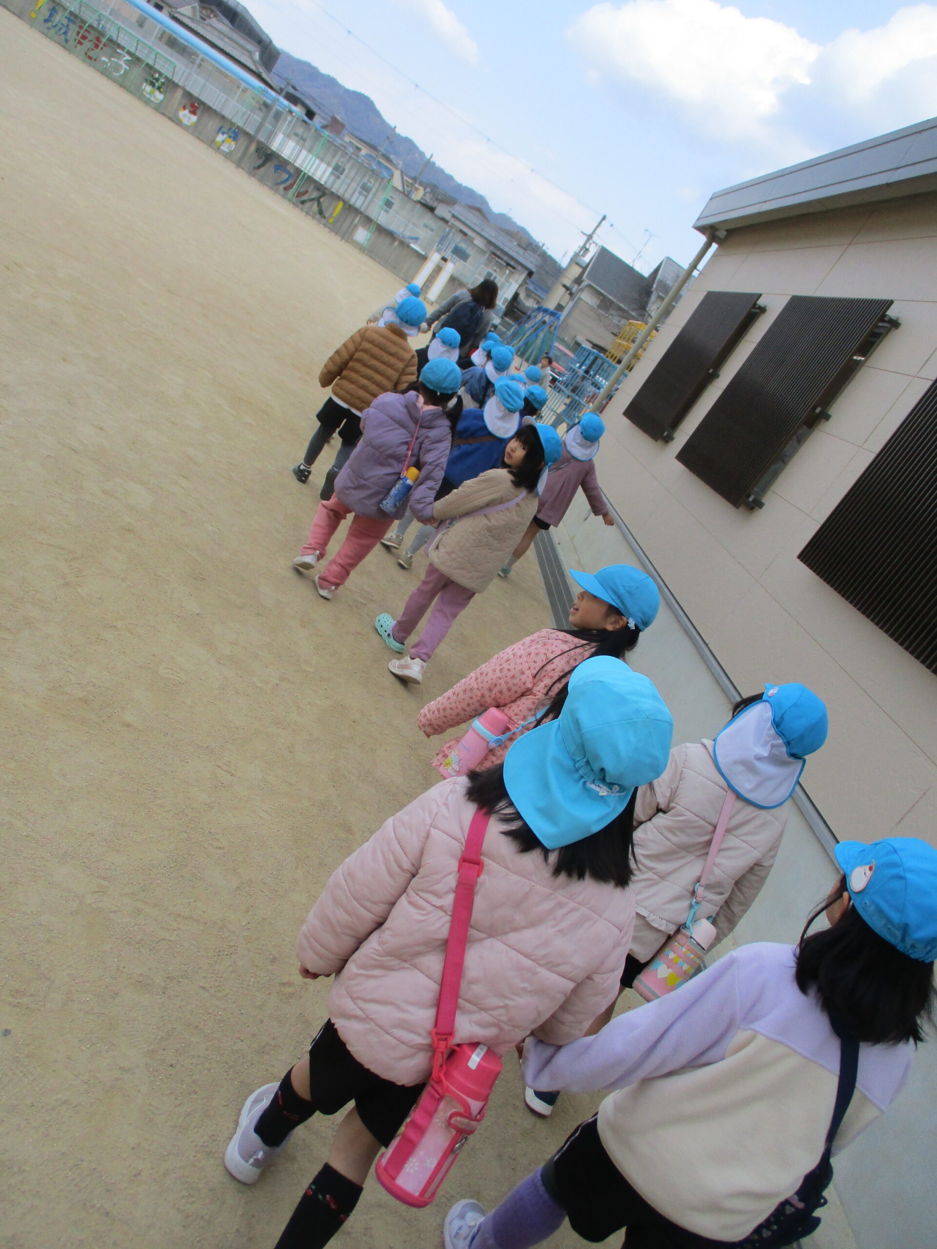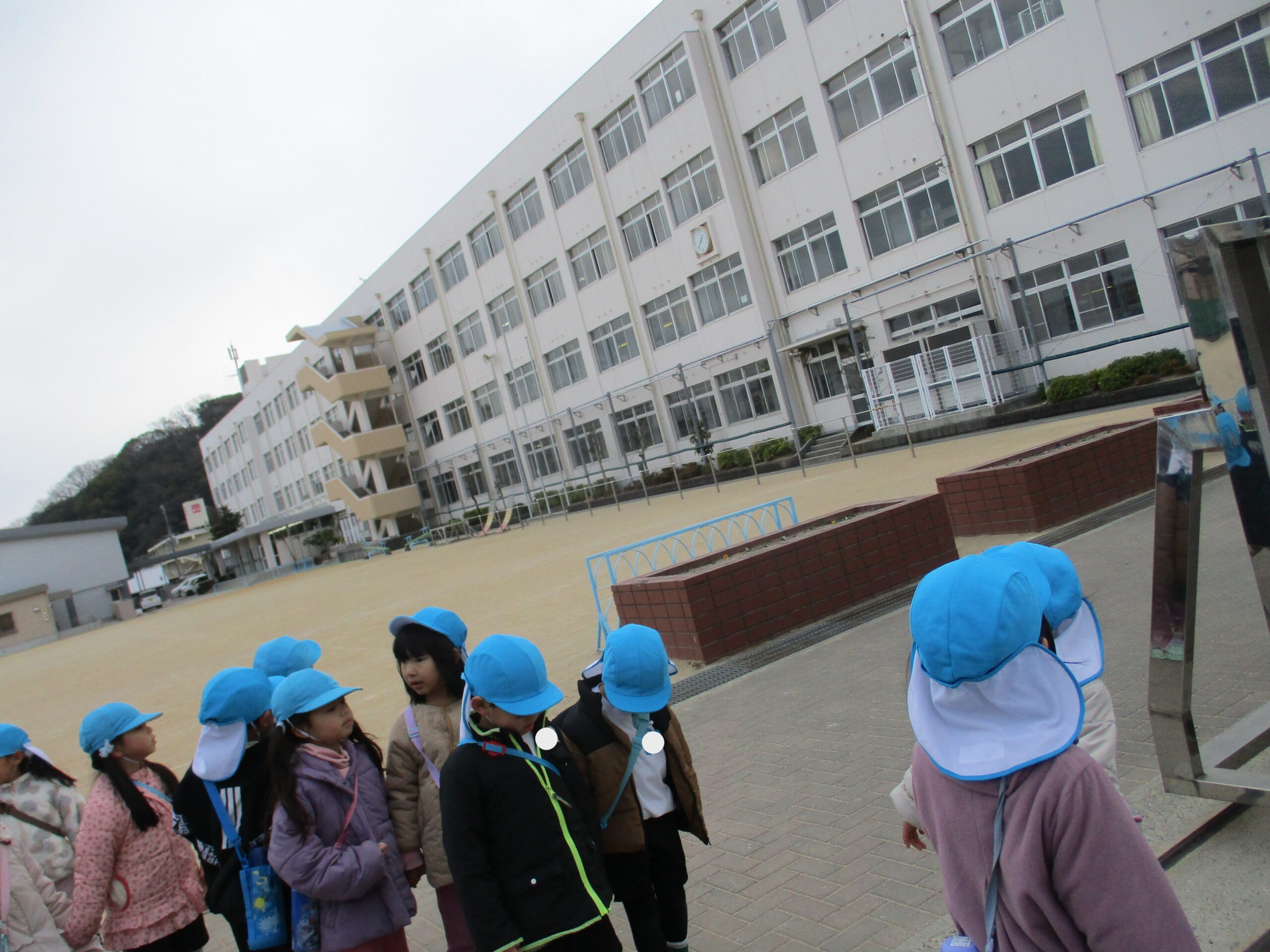 2月2日、城乾小学校へ歩いて向かいます。