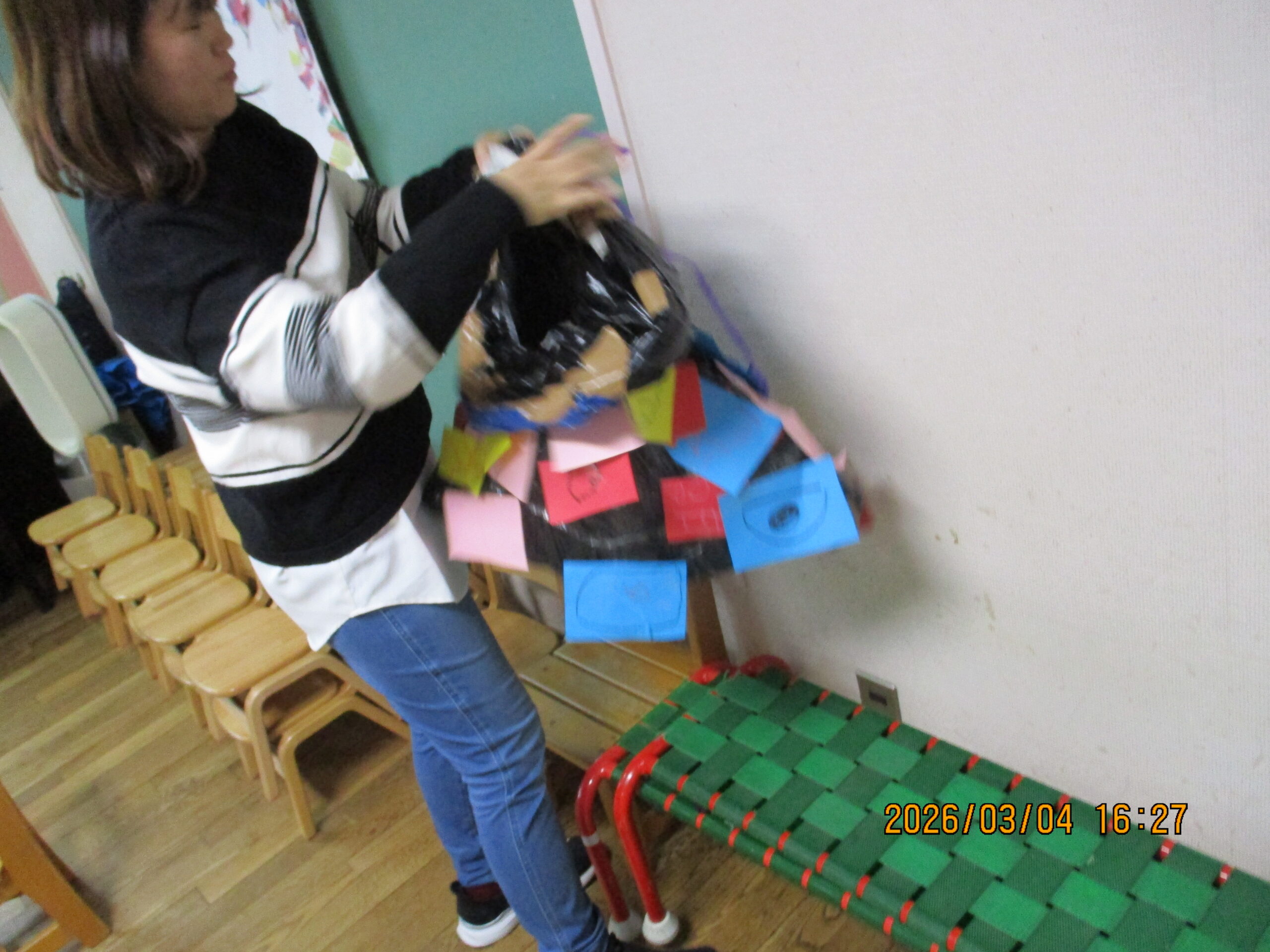 新聞紙玉入れをしたり・・・
